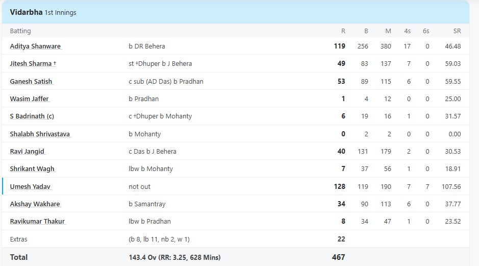 यह बात साल 2015 की है जब ओडिसा और विदर्भ एक रणजी मुकाबले के लिए आमने सामने थी। इस मैच में विदर्भ ने टॉस जीतकर पहले बल्लेबाजी का फैसला किया। पहले बल्लेबाजी करने उतरी विदर्भ की टीम ने पहली पारी में 467 रन बनाए।